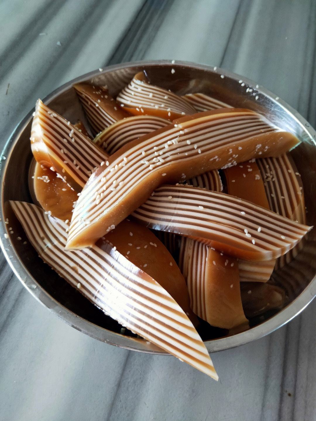2、1白糖3两放锅炒色,加水调制糖水后自然降温备用2倒入一罐椰浆于三分之一炼奶搅拌均匀3在马蹄粉里加水,和成粉团4将粉团分别放入椰浆和冷却了的糖浆里,慢慢搅拌直至粉团完全融化5准备金属盘,在盘底均匀涂抹一层油6小火蒸2分钟至形成成固体状,均匀涂抹糖浆7最后一层蒸。
